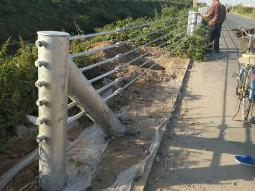 端部立柱是纜索護(hù)欄的主要配件,每段中應(yīng)用兩支,它的作用就是用來拉緊中間鋼絲繩不會過松。
